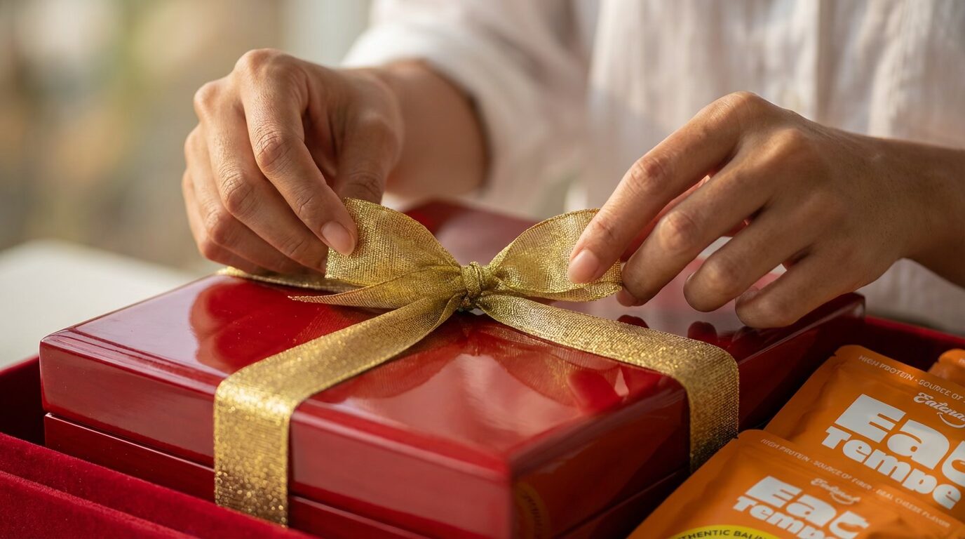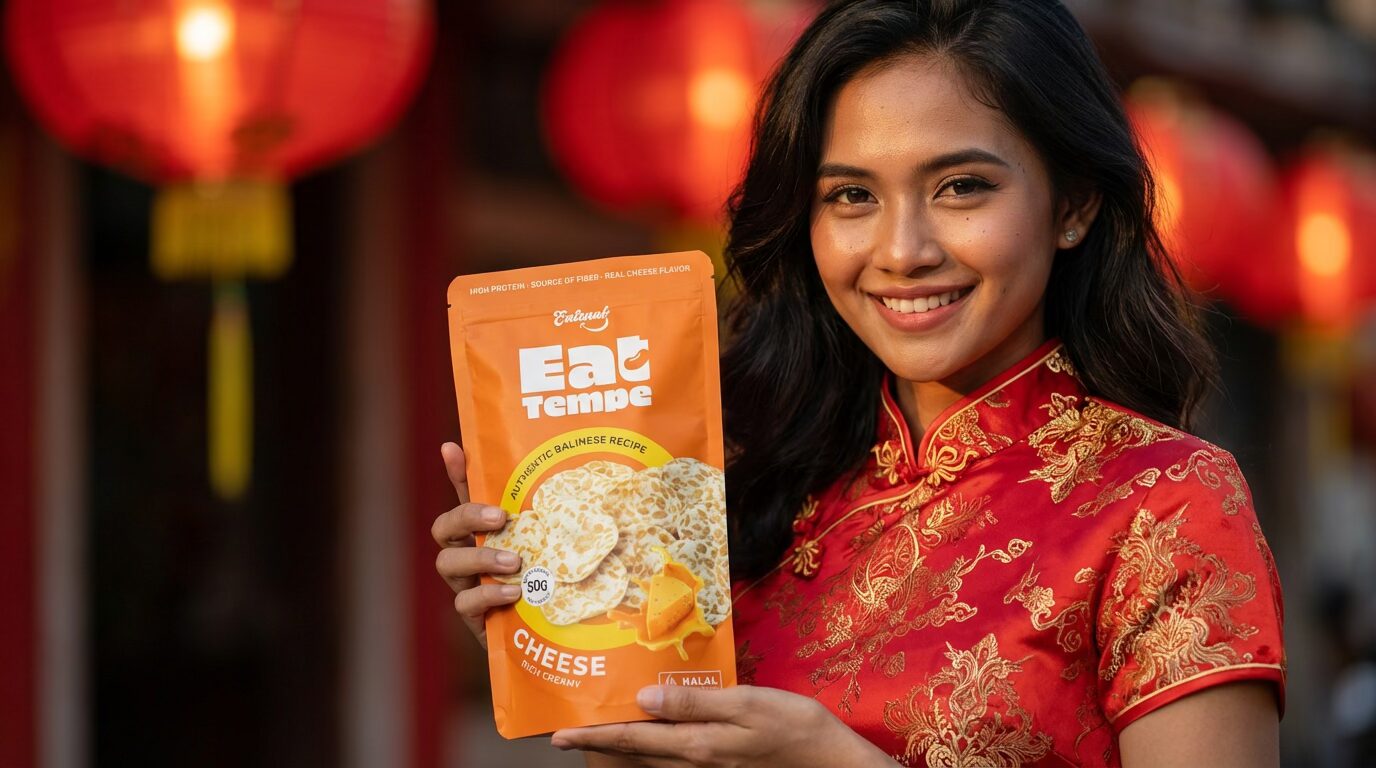 Hi loves! ✨ Gong Xi Fa Cai! Sebentar lagi feed kita bakal penuh warna merah dan lampion cantik. Tapi, bosen nggak sih kalau kirim hampers isinya nastar atau kue keranjang lagi? Let’s elevate the game. Tahun ini, aku mau bagi inspirasi hampers Imlek yang chic, penuh makna, dan pastinya: Savory. Kita bakal main dengan palet warna “Merah & Emas” dan menjadikan Eat Tempe Cheese sebagai bintang utamanya—simbol “emas” renyah pembawa cuan! Siap jadi trendsetter di keluarga?